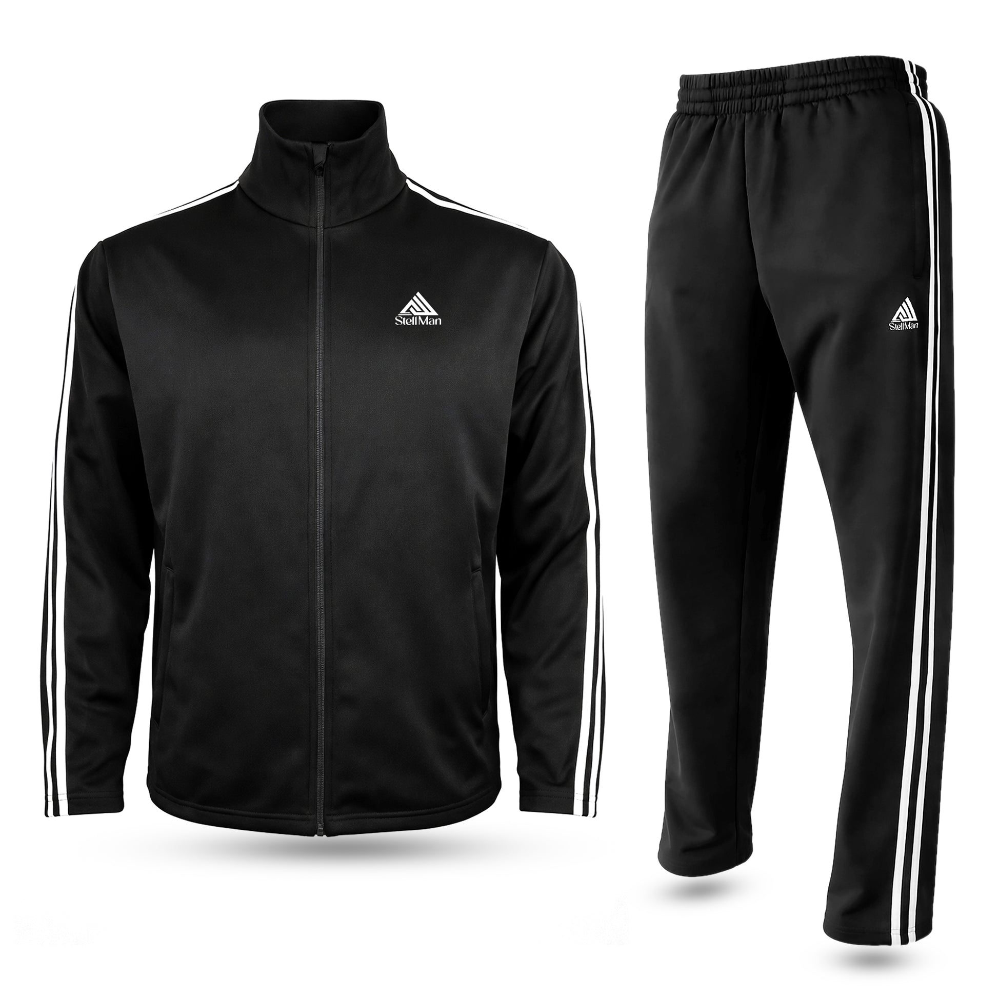 StellMan Axion Men's Track Suit – Men’s Performance Polyester Set - Black