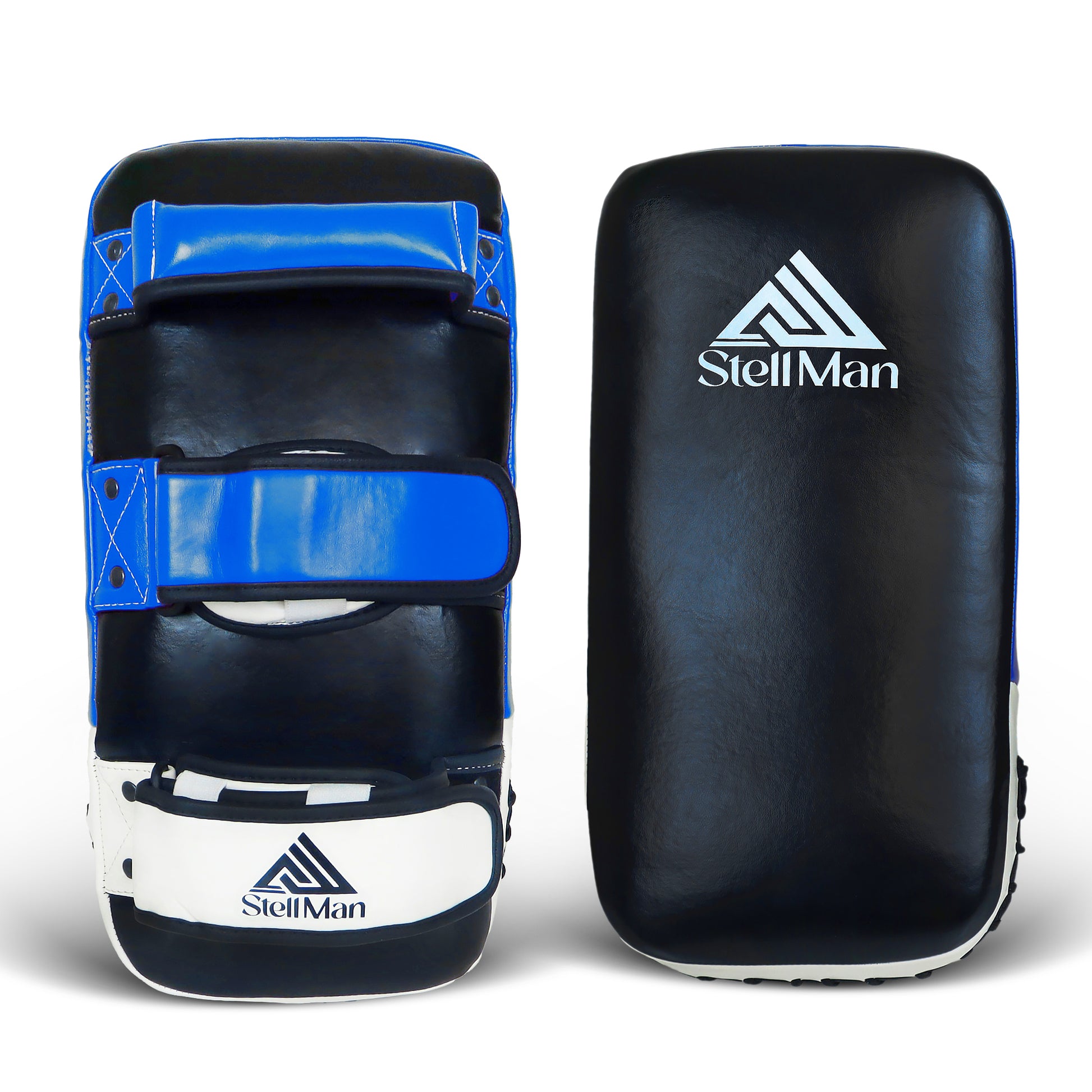 StellMan Muay Thai Curved Kick Pads Blue – Leather MMA & Kickboxing Training Pads
