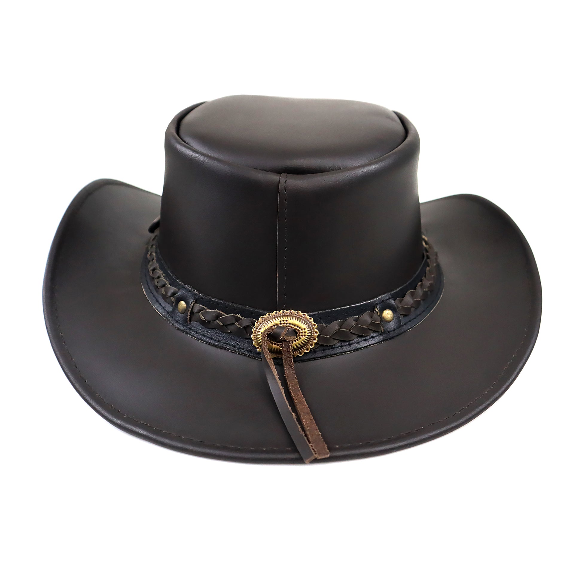 - Braided leather hatband with metal detailing for a refined finish